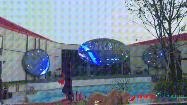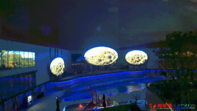 上海华港健康生活馆露天中庭区的点睛之笔,便是三面“温泉之眼”,室外晶状体水滴形屏幕总面积达230㎡,采用与东方泉都中庭景观融合的天蓝色透明屏,白天和夜晚呈现出不同的视效体验。