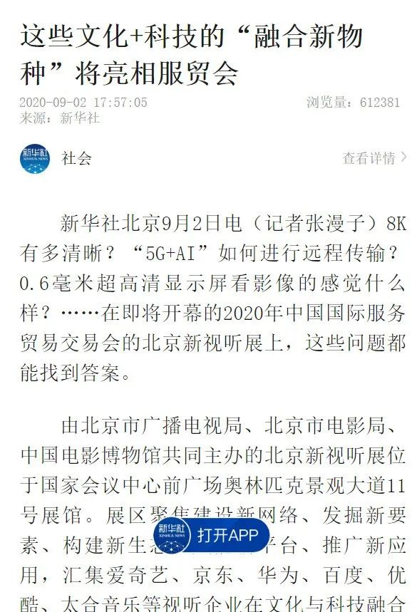 新华社:《这些文化+科技的“融合新物种”将亮相服贸会》